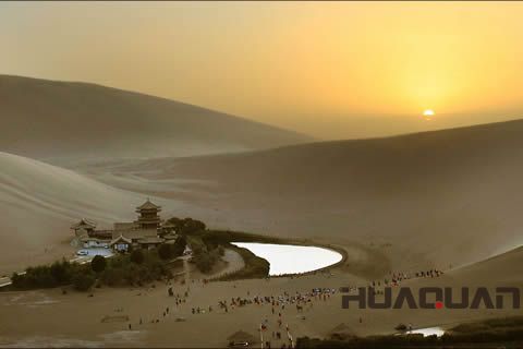 要問中國(guó) 美的風(fēng)景在哪兒?敦煌算作一處。尤其是那神奇的月牙泉,以及由此形成的勝景——“月泉曉徹”,總讓人垂涎、迷戀。沙漠的眼睛、天地的鏡子、人間的圣泉……一個(gè)個(gè)堪稱地表 美的詞匯,我想無論用哪一個(gè)來形容月牙泉都不為過。9月9日上午,一臺(tái)50千瓦的玉柴系列發(fā)電機(jī)組從山東華全動(dòng)力裝車起運(yùn),發(fā)往甘肅敦煌,于是隨華全發(fā)電機(jī)組,我們也來到了敦煌——這座被稱作“沙都”的千年古城。